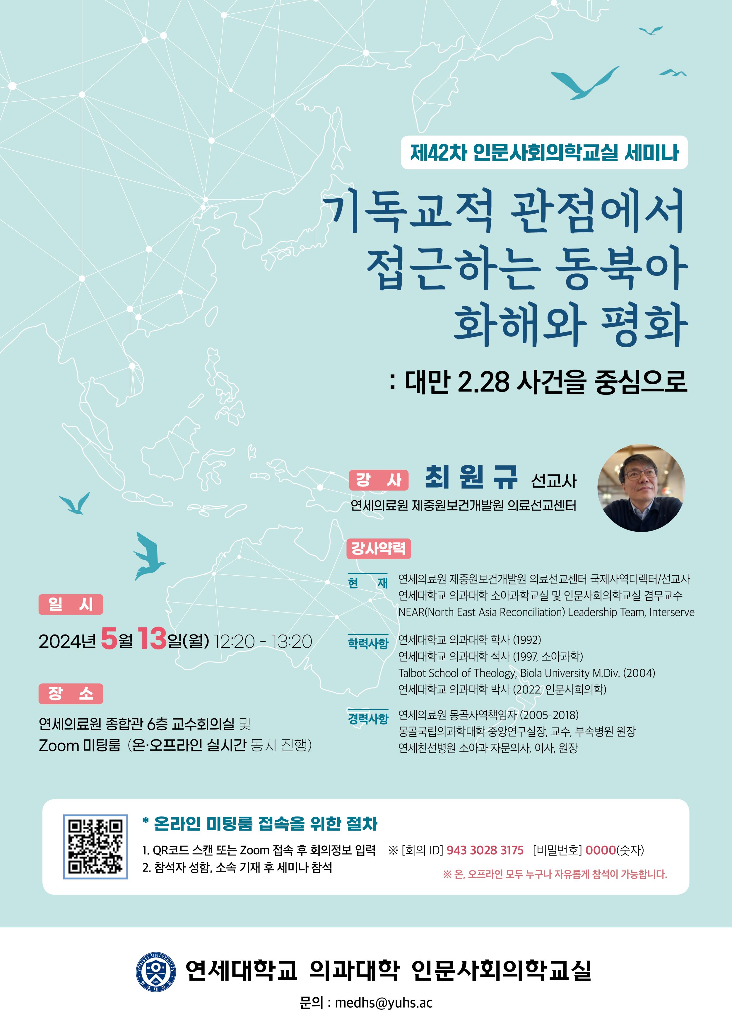 - 행사명 : 제42차 연세의대 인문사회의학교실 세미나