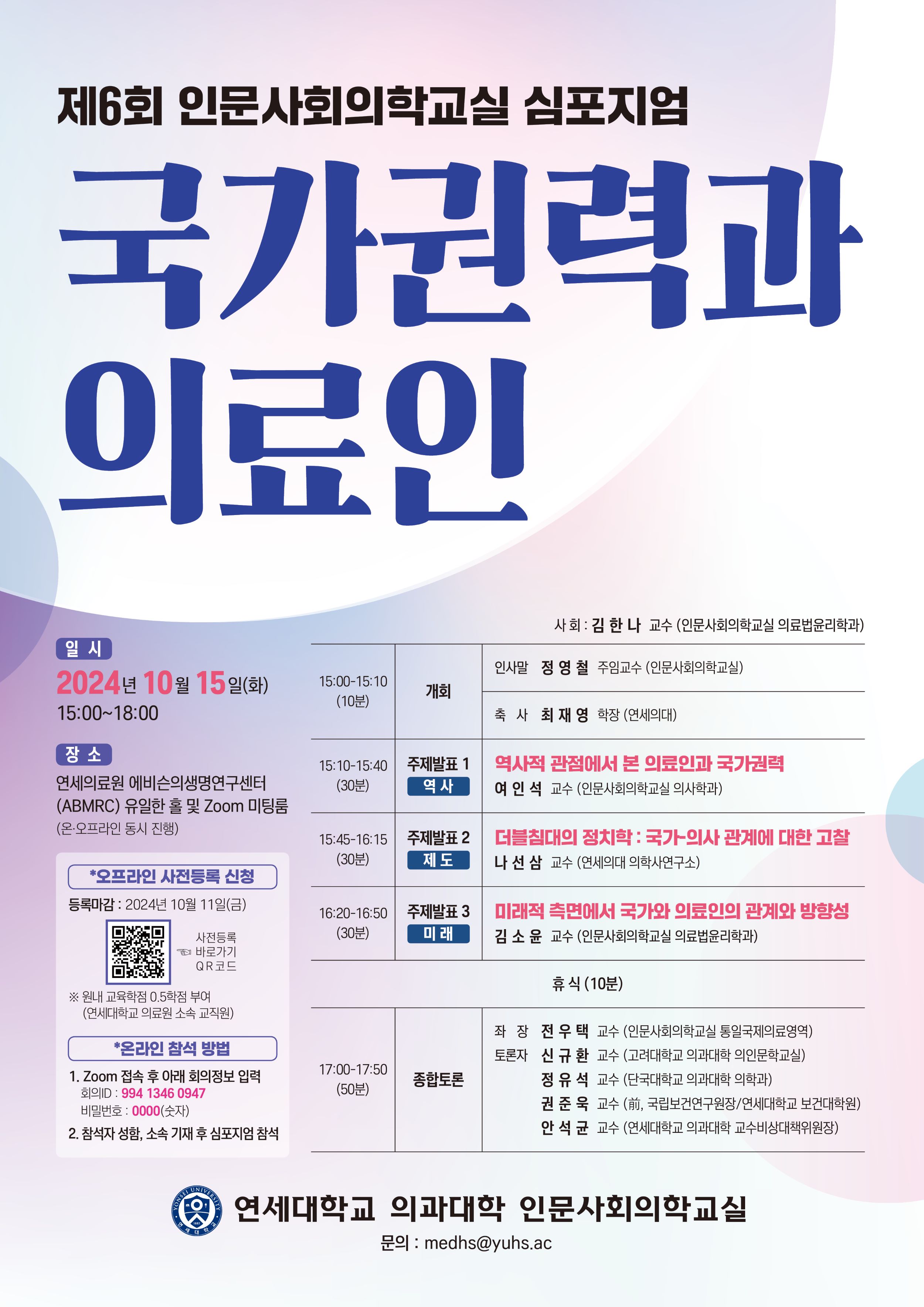 [2024 제6회 인문사회의학교실 심포지엄] "국가권력과 의료인"