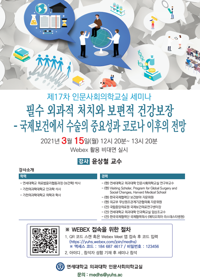- 행사명 : 제17차 연세의대 인문사회의학교실 세미나