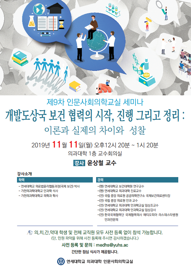 - 행사명 : 제9차 연세의대 인문사회의학교실 세미나